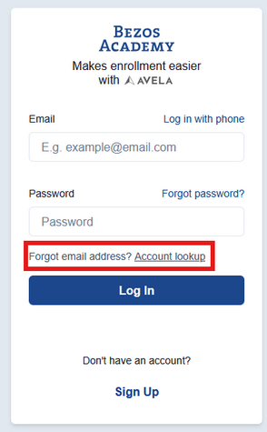 Step 2a: Click Account lookup and follow the prompted questions. To locate your account, you will need to provide your first name, last name, and home address.