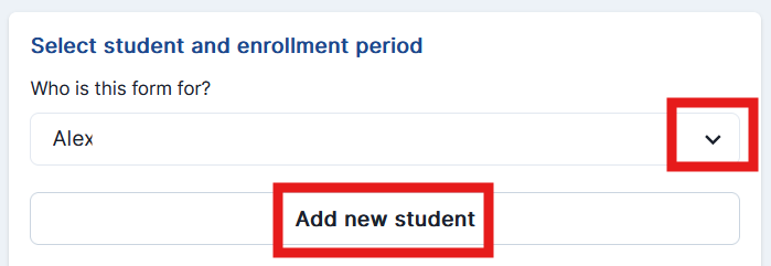 Step 4: If you have already created a student profile for your child, select their name from the drop-down menu. If you have not created a student profile, click Add new student.